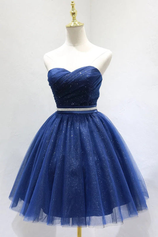 Robes de soirée noires scintillantes sans bretelles, robe de cocktail SD1220