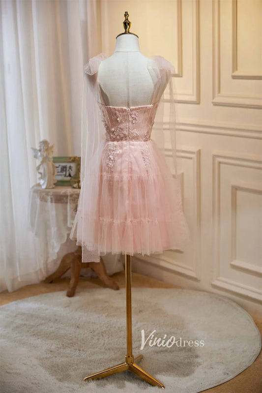 Jolies robes de soirée roses, robe courte de remise de diplôme en Tulle, SD1504