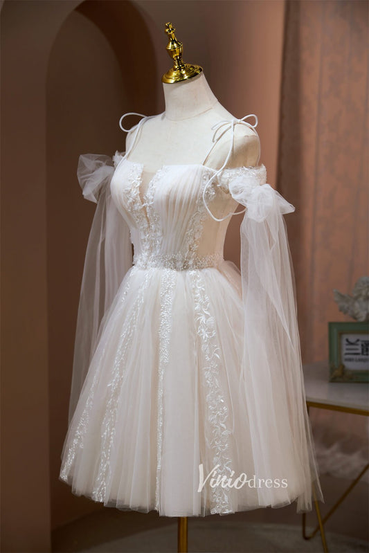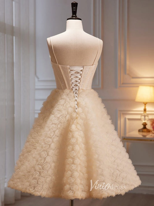Robes de soirée Rosette longueur genou, robe de remise de diplôme à bretelles Spaghetti SD1610