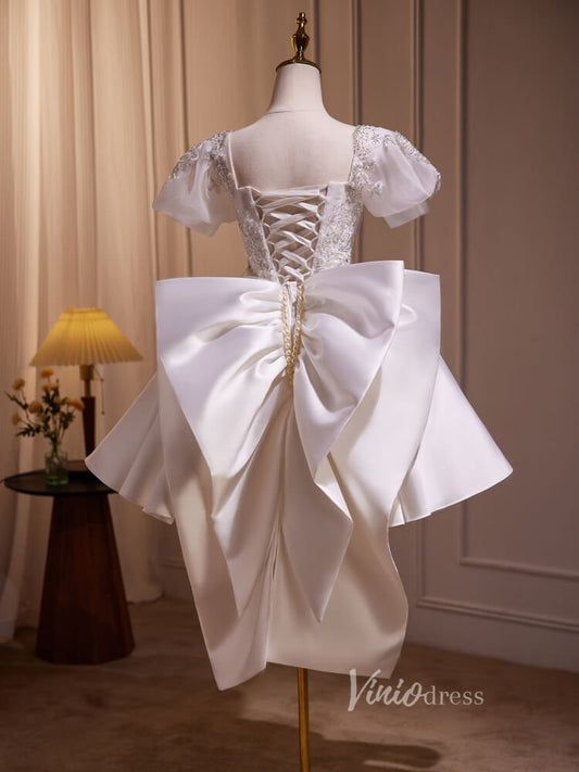 Robes de soirée en dentelle perlée ivoire avec manches bouffantes, BJ013