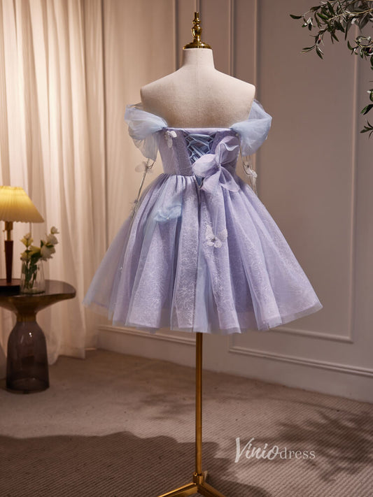 Robes de soirée en dentelle lavande, robe courte de remise de diplôme papillon, BJ002