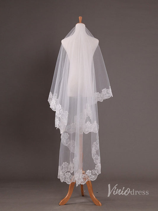 Voile de fard à joues de mariée long en dentelle appliqué Viniodress