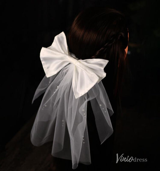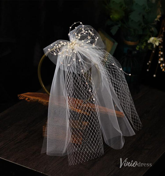 Voile court en tulle avec nœud en perles pour mariée Viniodress AC1312