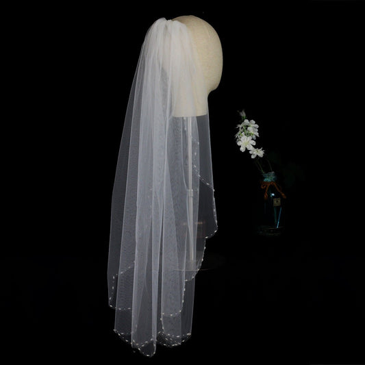 Voile de mariage en tulle ivoire simple, longueur à la taille avec perles, ACC1047