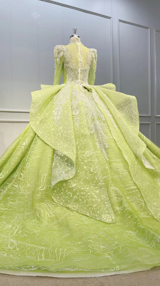 Robes de mariée vintage jaune vert à manches longues robes de bal 51011
