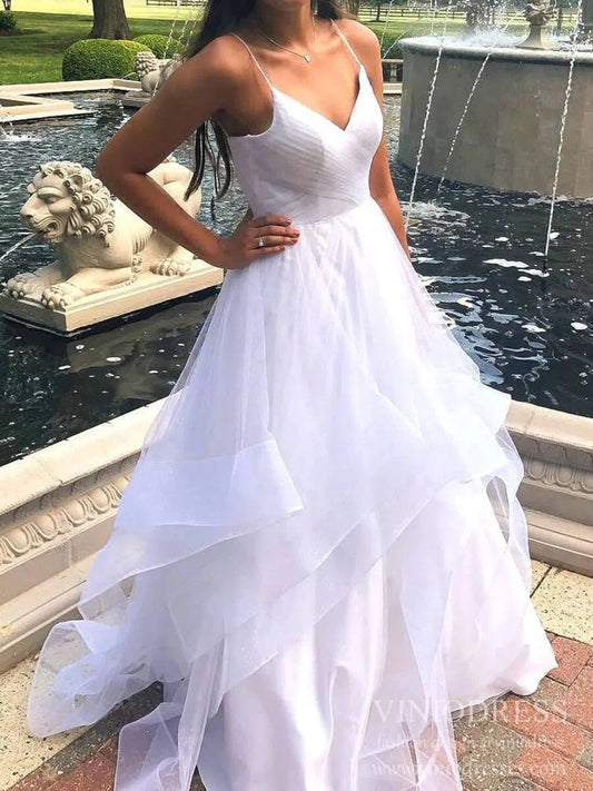 Robes de bal longues en satin simples à bretelles spaghetti et col en V avec fente FD1359