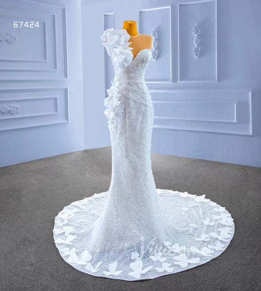 Robes de mariée sirène en dentelle florale perlée brillante 67424