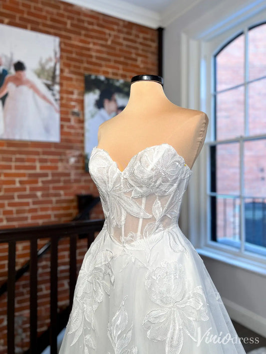 Strapless 3D Floral Lace Wedding Dress with Sweetheart Neck and Sheer Corset – VW2604