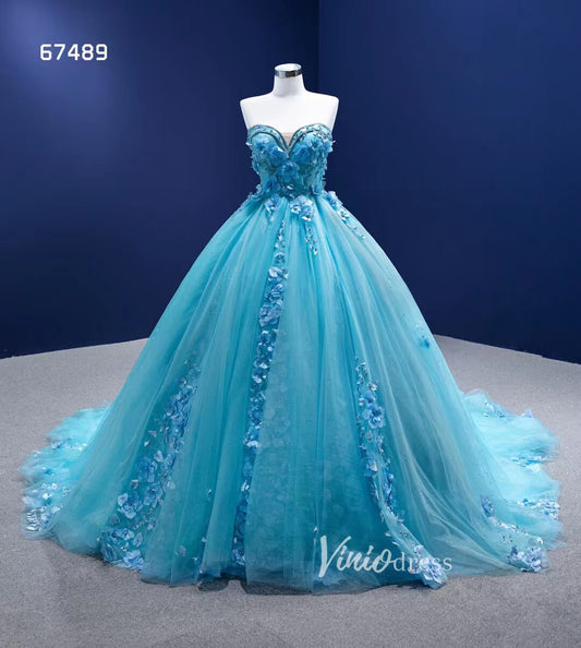 Robe de mariée robe de bal bleu bébé sans bretelles robe de coing à fleurs 3D 67489