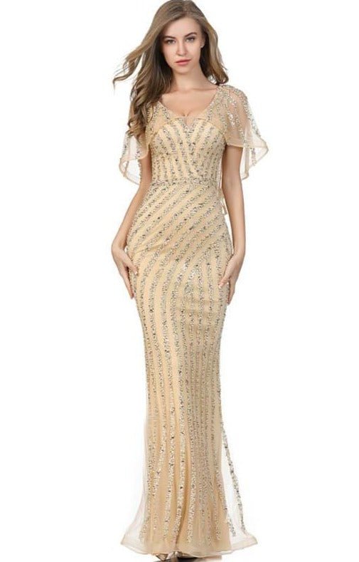 Robe de bal Vintage à manches chauve-souris, tenue de soirée perlée des années 20, FD2487