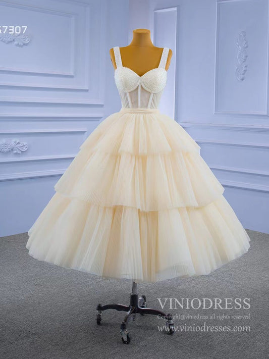 Vintage Champagne thé longueur robes de bal couches Tulle robe formelle 67307