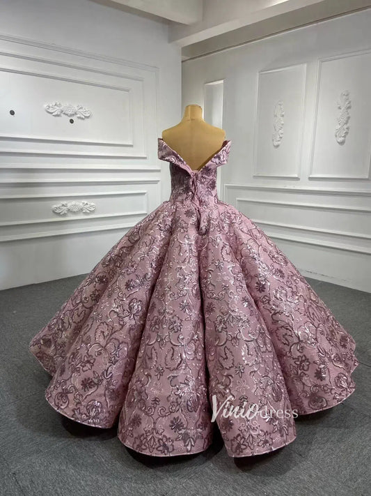 Robes de Quinceanera en dentelle Rose poussiéreuse Vintage, épaules dénudées, robe douce 16 ans, 66661 viniodress