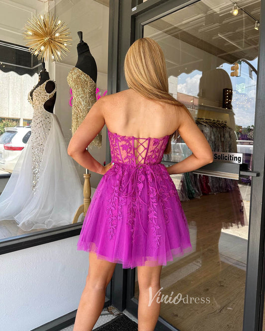 Robes de soirée Hoco en Tulle violet sans bretelles, robe courte de remise de diplôme SD1120