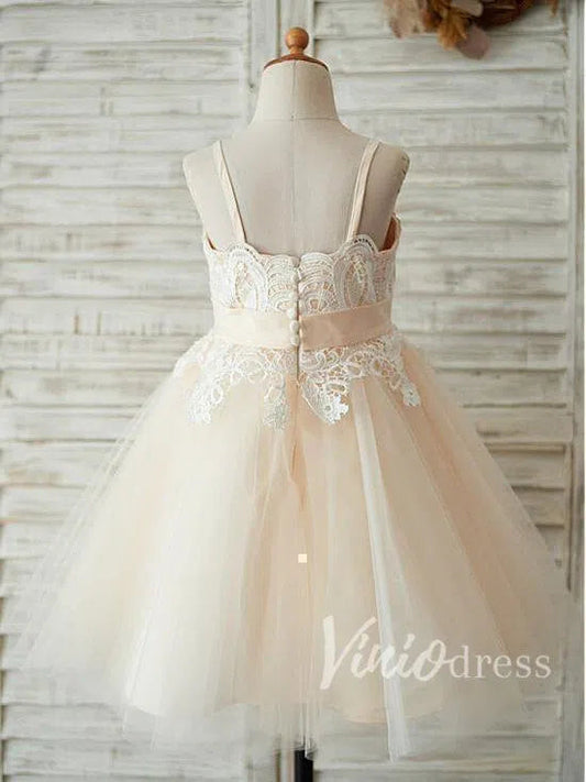 Robes mignonnes de fille de fleur de champagne avec la ceinture de perles GL1016