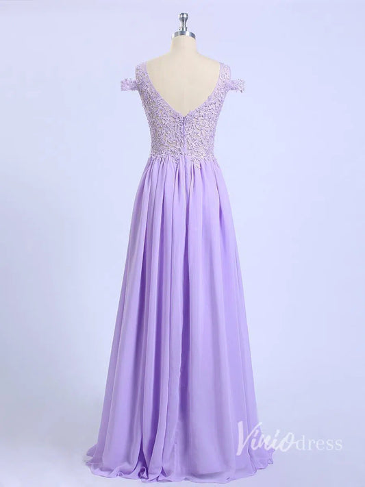 Robes de demoiselle d'honneur longues lilas bon marché avec épaule froide VB1002