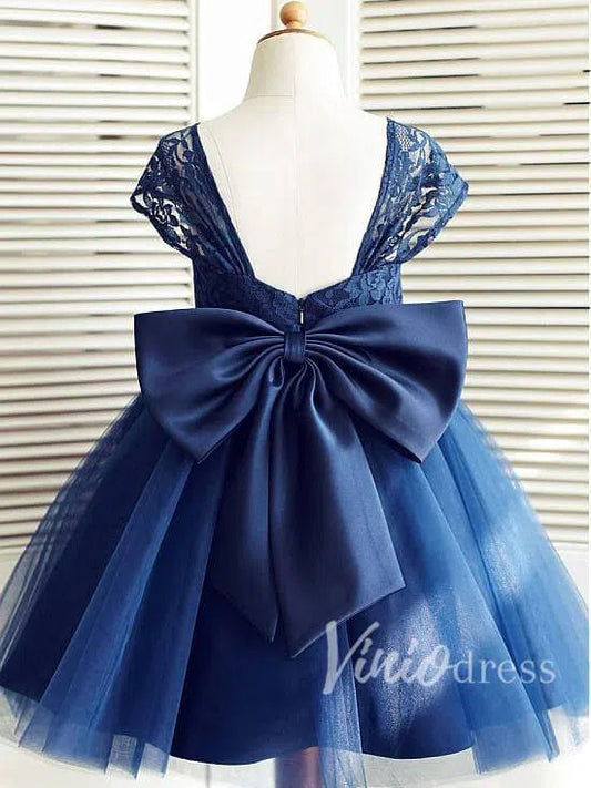 Robes de fille de fleur mignonnes bleu marine avec nœud détachable GL1017