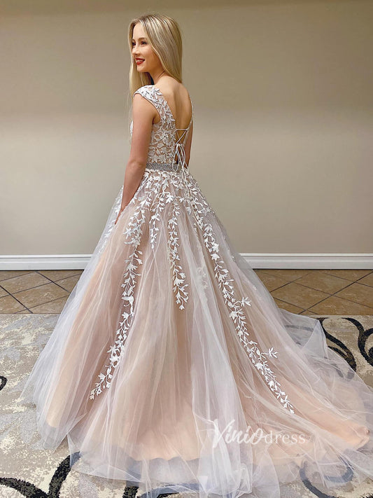 Lace Fit-and-Flare Wedding Dress with Plunging Neckline and Sheer Cutout Back – VW2562