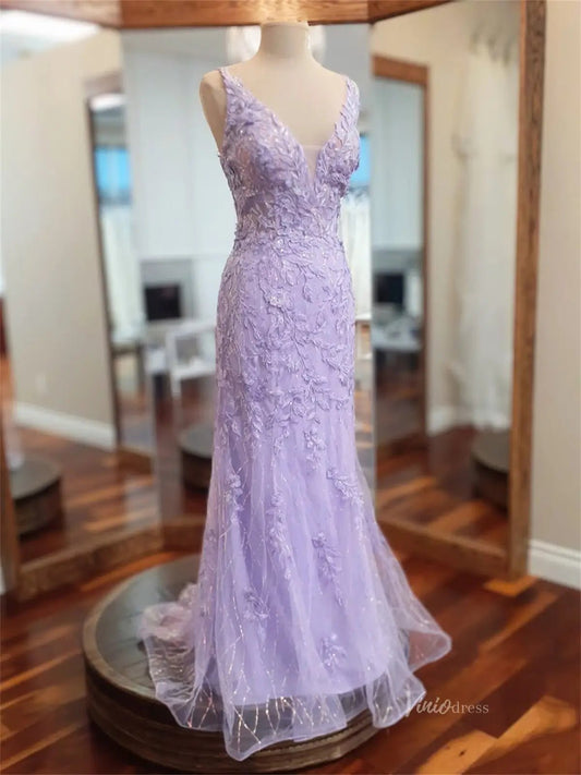 Robe de bal sirène lavande, bretelles Spaghetti, dentelle appliquée, robe de soirée FD2917