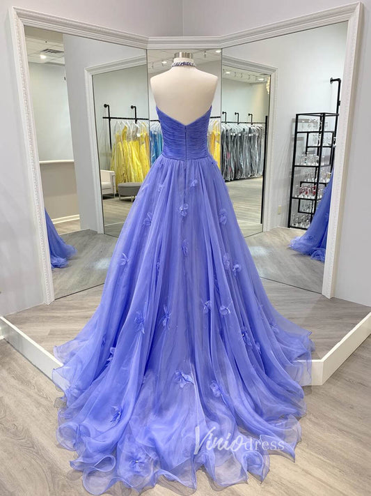 Lavender Tulle Prom Dress 2025 A-Line Floral Formal Gown with 3D Flowers & Pockets- FD3807