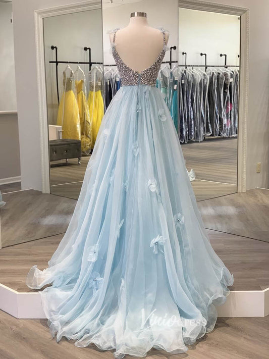Robes de bal Boho bleu clair avec appliques papillon FD1637