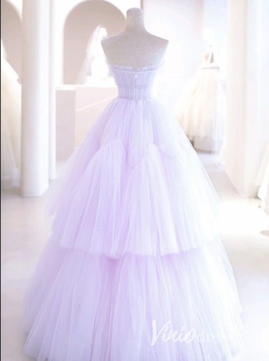 Robes de bal en tulle lilas, robe de soirée à volants à plusieurs niveaux FD3180