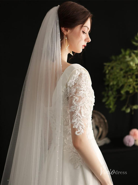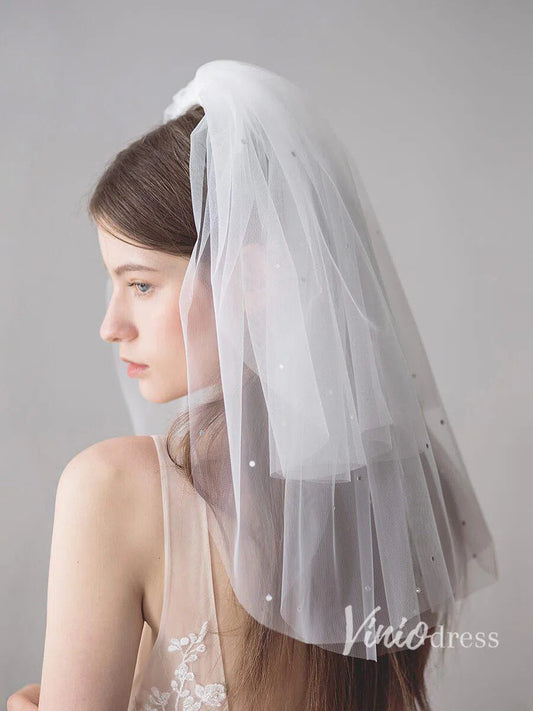 Voiles de mariée en tulle à 2 niveaux avec perles Viniodress AC1306