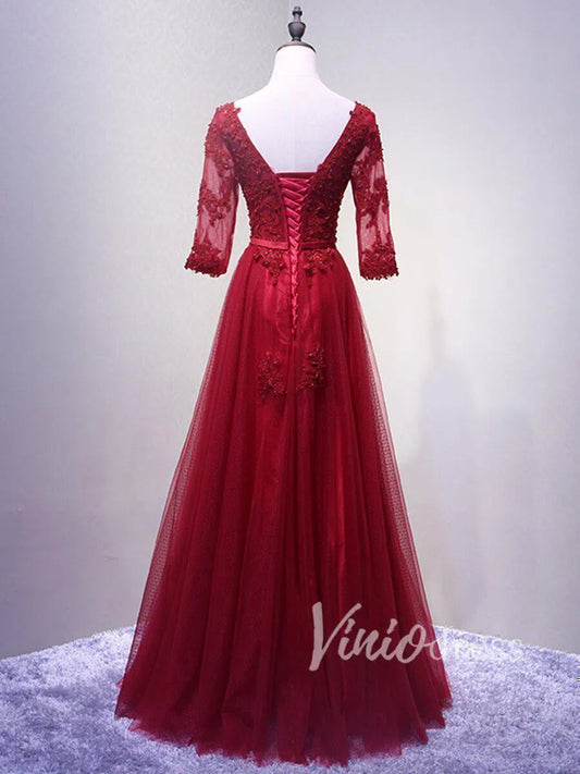 Robes mère de la mariée rouge foncé à manches 3/4 FD1515