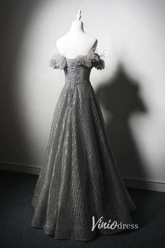 Robe de bal scintillante à épaules dénudées, robe formelle grise, AD1031