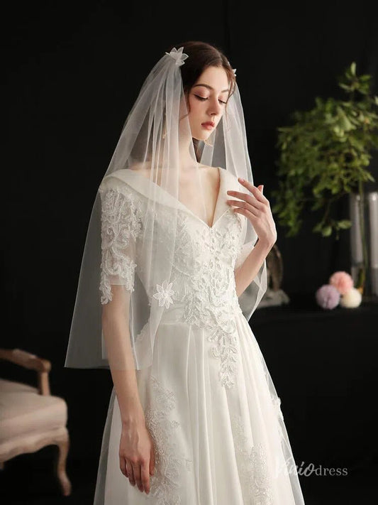 3D Floral Tulle Wedding Dress with Deep V-Neck and Sheer Back – VW2539