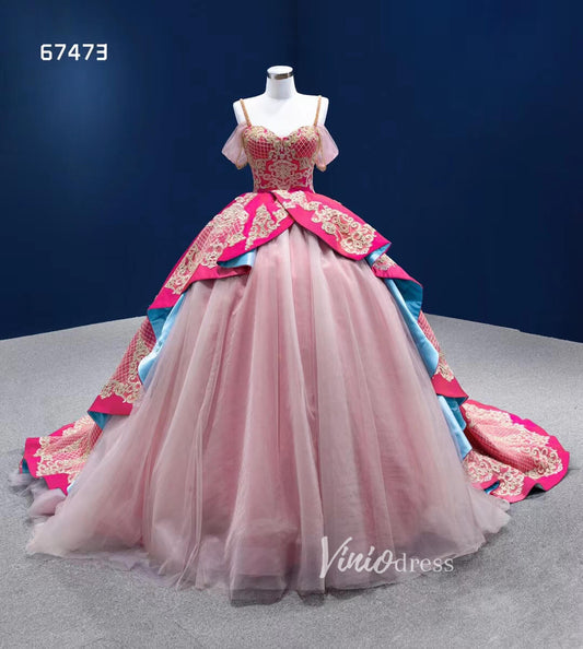 Robe de mariée rose vintage robe de bal robe douce 15 robe de coing 67473