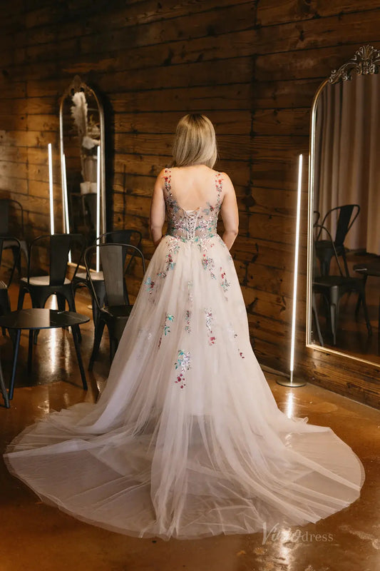 Robes de mariée Boho florales brodées avec bretelles VW1232