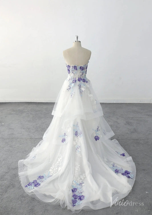 Whimsical Meadow Wedding Dresses Blush Floral Bridal Gown with Veil FW116 Sleeveless