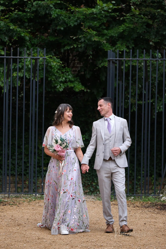 Robes de mariée en tulle floral gris pour la photographie VW2100
