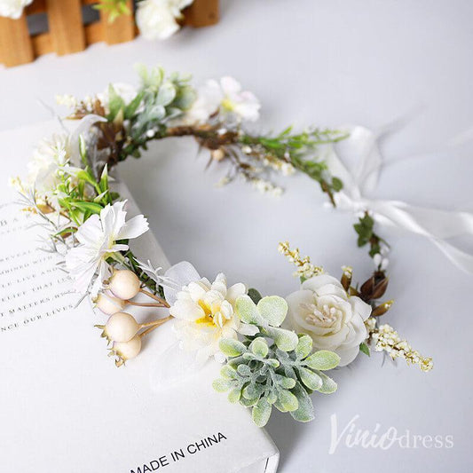 Couronnes florales blanches et jaune clair pour la mariée AC1256