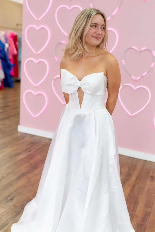Robes de mariée en satin à larges bretelles et col carré avec poches VW1838