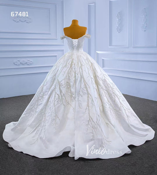 Robe de mariée de luxe en satin perlé, épaules dénudées, 67481