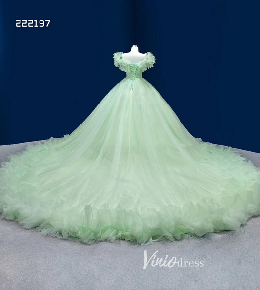 Robe de mariée vert sauge, robe de mariée en tulle à volants, robe douce 16 ans, 222197