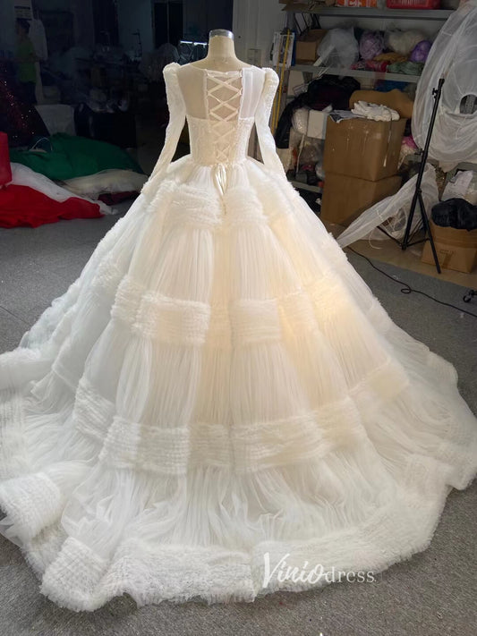 Robe de mariée robe de bal à volants vintage 67372 Manches longues