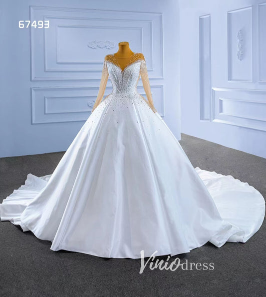 Robes de mariée robe de bal en satin à manches longues 67493