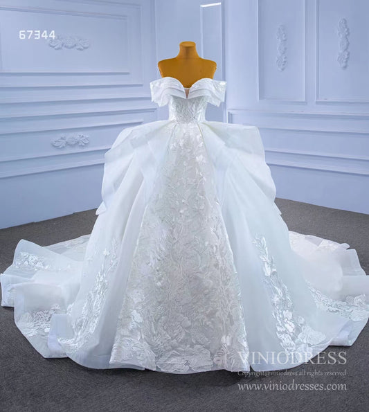 Robes de mariée royales superposées vintage avec manches 67329 Viniodress