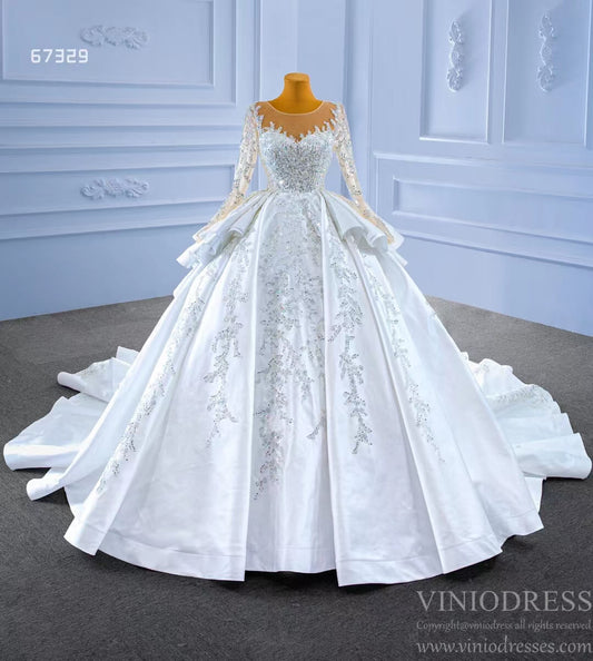 Robes de mariée de luxe avec perles et manches longues 67382 Viniodress
