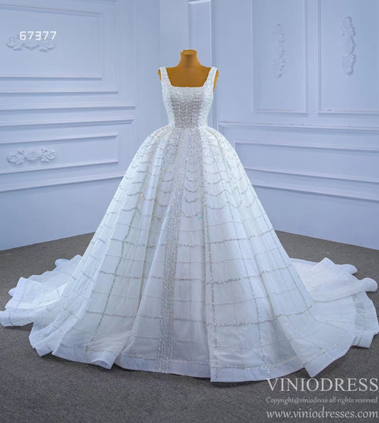 Col carré perlé robes de mariée de luxe vestido de novia 67377