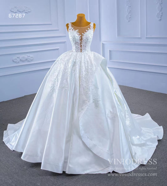 Robe de mariée en satin avec appliques de dentelle, robe de bal plongeante à col en V 67287