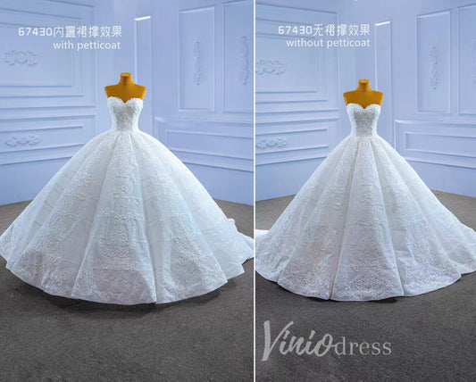 Robe de mariée sans bretelles en dentelle, robes de mariée à plusieurs niveaux appliquées 67348