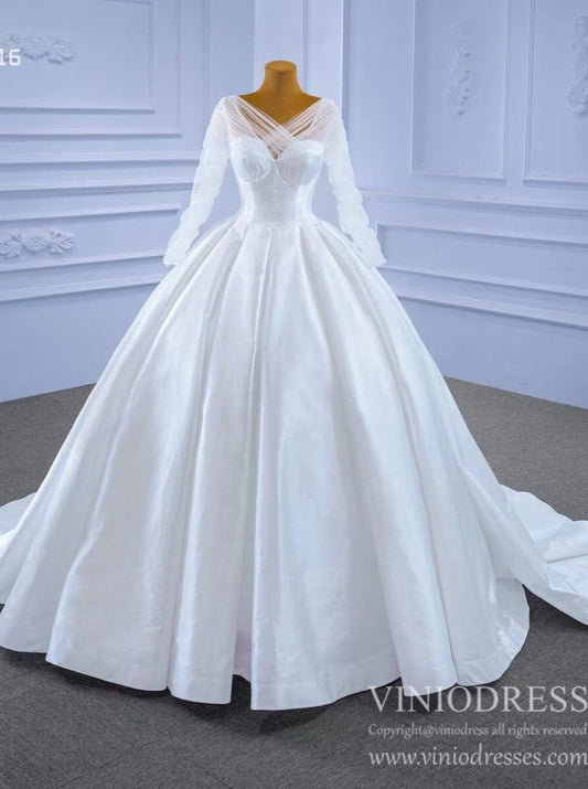 Robe de mariée simple et modeste en satin à manches longues Viniodress 67316