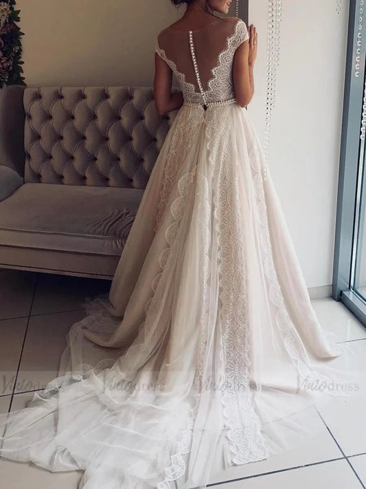 Robes de mariée en dentelle Boho romantique voir à travers la robe de mariée de plage VW1347