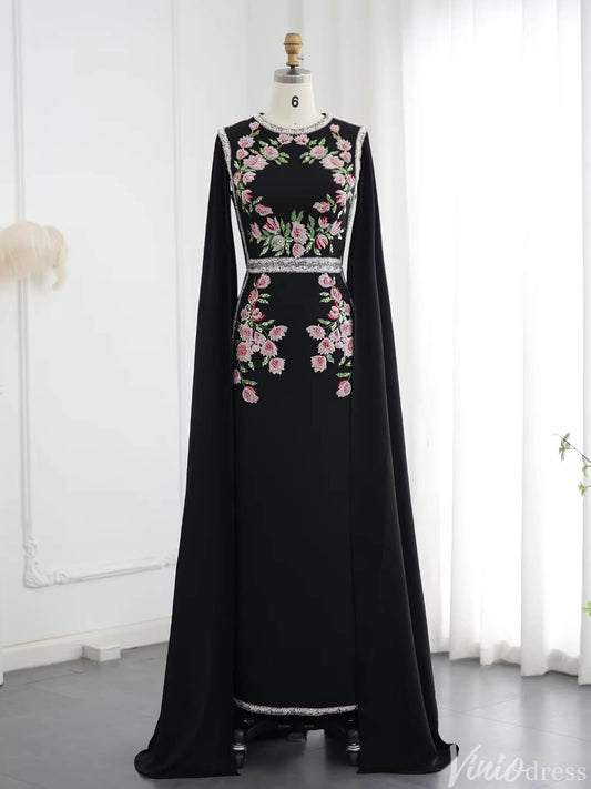 Robes de bal noires perlées argentées, col en V 67405 viniodress