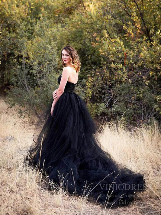 Robes de mariée en Tulle noir sans bretelles simples, robe de photographie de mariage VW1227
