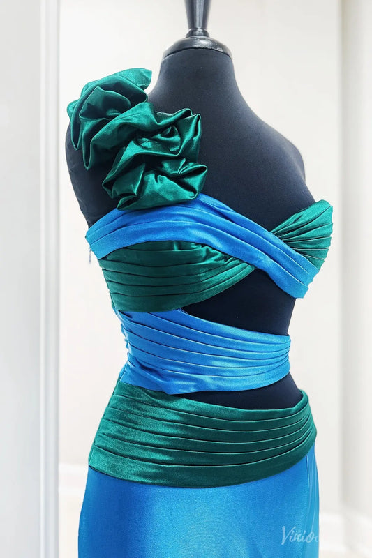Pink Satin Mermaid Two-Pieces Prom Dresses with Floral One Shoulder - FD6047