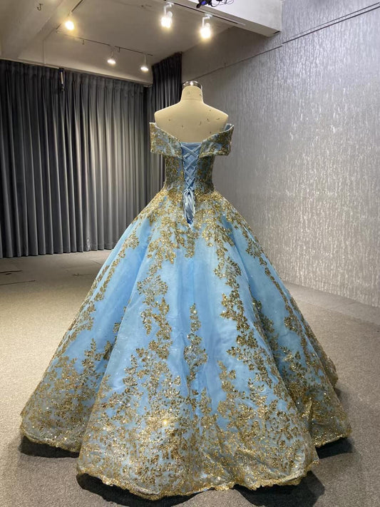 Robes de Quinceanera bleues à épaules dénudées, robe de bal, longueur au sol, 66949